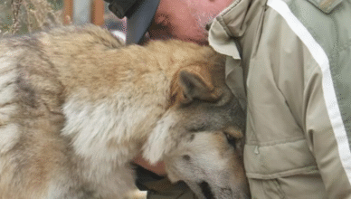 W zimny, zimowy wieczór człowiek mieszkający na skraju lasu usłyszał ciche dźwięki przy swojej chatce. Gdy wyszedł na zewnątrz, zobaczył wychudzoną i zmęczoną