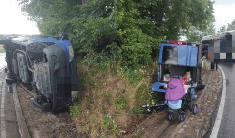 Do groźnie wyglądającego wypadku doszło na drodze krajowej nr 59 we wsi Zalec (woj. warmińsko-mazurskie). Bus wjechał do rowu i przewrócił się na bok. Pojazdem podróżowało dziewięć osób, w tym sześcioro dzieci. Na szczęście w zdarzeniu nikt nie poniósł obrażeń.