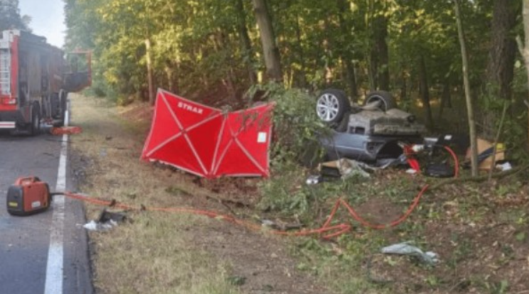 Tragedia w Brzezinach (powiat kaliski). W sobotę samochód marki bmw uderzył w drzewo, a następnie dachował. KIedy służby przybyły na miejsce wypadku, dokonały koszmarnego odkrycia.
