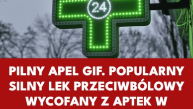 Główny Inspektorat Farmaceutyczny (GIF) wydał stanowczą decyzję o natychmiastowym wycofaniu z aptek w całej Polsce serii popularnego, silnego leku przeciwbólowego na receptę. Badania